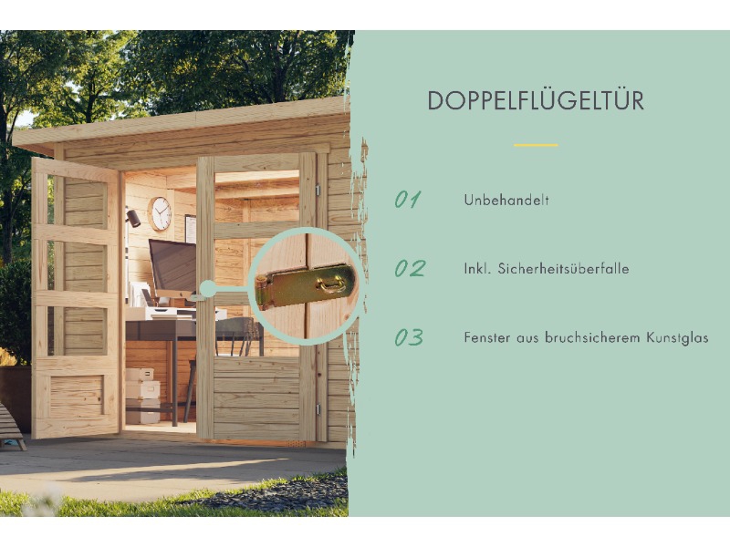 Karibu Gartenhaus Kerko 3 natur mit 2,40 m Anbaudach