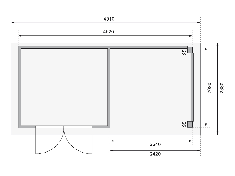 | Außenmaß Wand (B x T): | 238 x 213 cm |