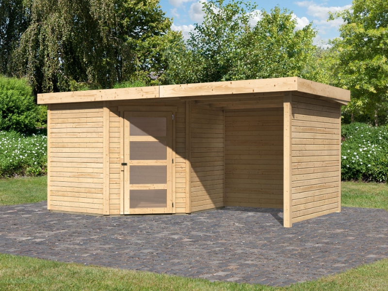 Karibu Gartenhaus Schwandorf 5 natur mit Anbaudach 2,25 Meter, Seiten- und Rückwand