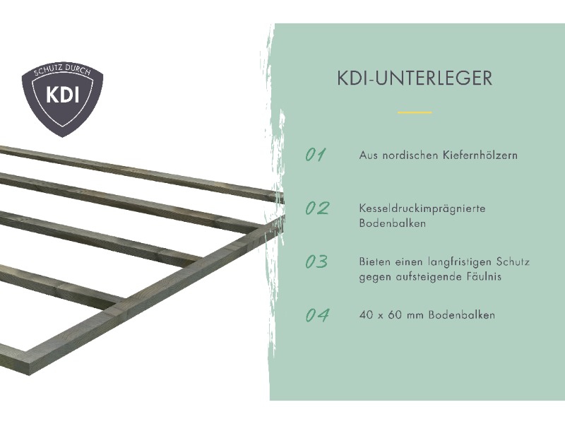 Unterkonstruktion: | 40 x 60 mm kesseldruckimprägnierte Bodenbalken |