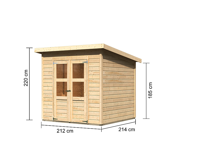 Karibu Gartenhaus Merseburg 4 - Flachdach Gerätehaus mit Doppeltüre und der Option eines Anbaudaches