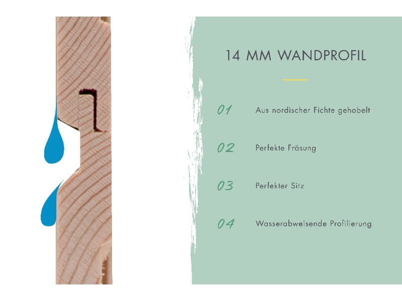 | Technische Details zum 14 mm Karibu Gartenhaus Merseburg 4: | |