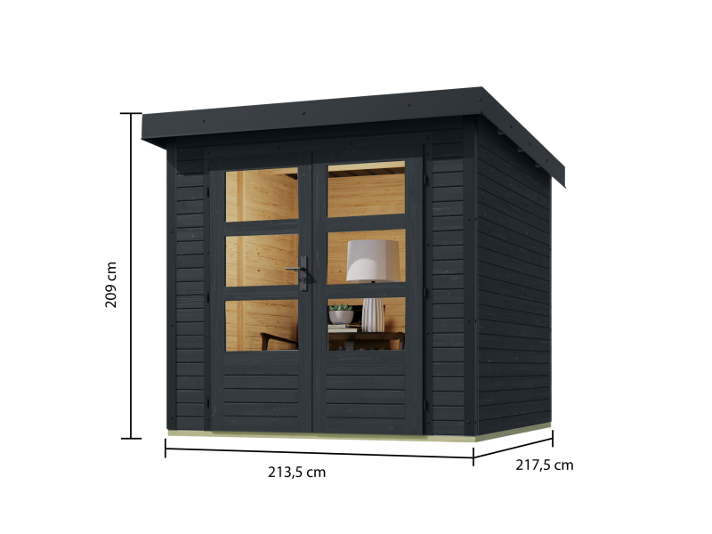 Alle Bauteile, also Wände, Türen, Fenster, Rauhspund, Leisten und Latten etc. bis auf die kesseldruckimprägnierten Bestandteile müssen immer allseitig behandelt werden. Die Stellen des Holzes, die später durch den Aufbau nicht mehr zugänglich sind, wie z.B. Nuten und Federn, sollten vor dem Aufbau vollständig mit einer Holzlasur behandelt werden. Anschließend versehen Sie Ihr Produkt mit einem zweifachen Schutzanstrich z.B. einer unsere hochwertigen Holzschutzlasuren oder einer Holzschutzfarbe Ihrer Wahl. Nur so haben Sie lange Freude an Ihrem Produkt. Die Behandlung des Holzes verhindert ein zu schnelles Austrocken und schützt dieses vor UV - Strahlung sowie vor Schädlingsbefall. Passende Farben und Zubehör finden Sie in unserer Kategorie Farbwelten". Spätestens alle zwei Jahre sollten Sie den Schutzanstrich überprüfen. Diese Pflege-Empfehlungen gelten ausschließlich für Häuser im Außenbereich.