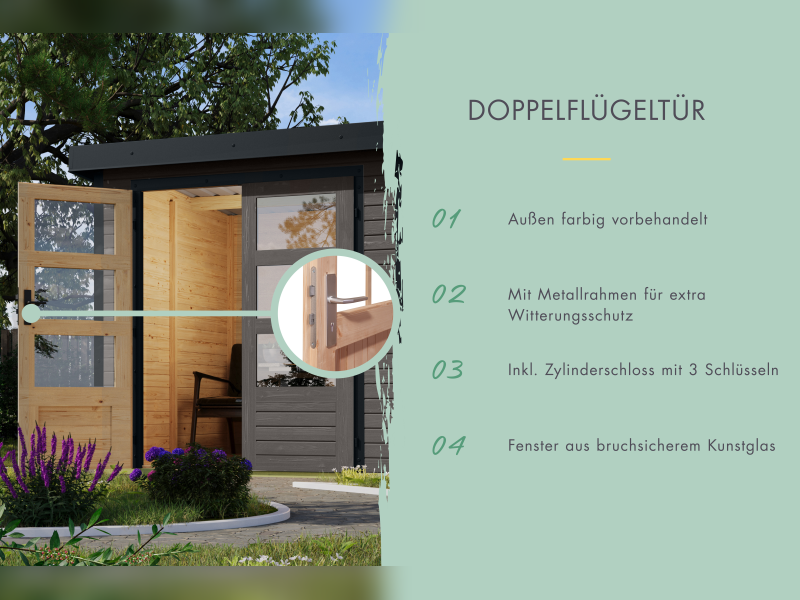 | Technische Details zum 19 mm Karibu Hybrid Gartenhaus Jupiter 5 B: | |