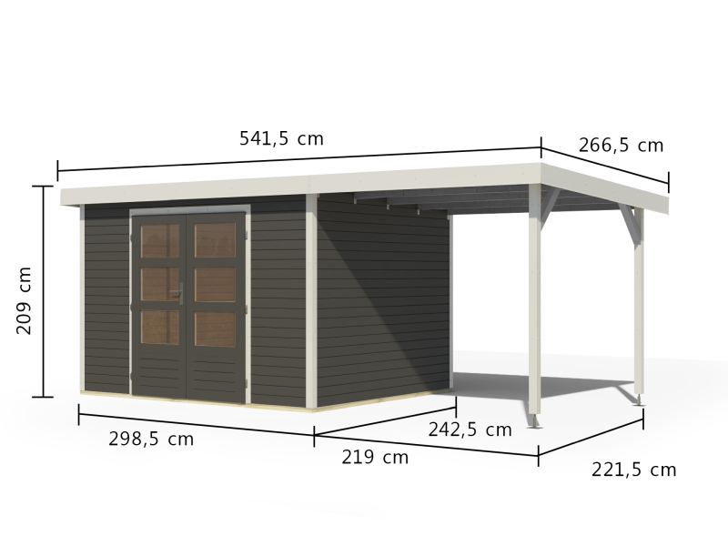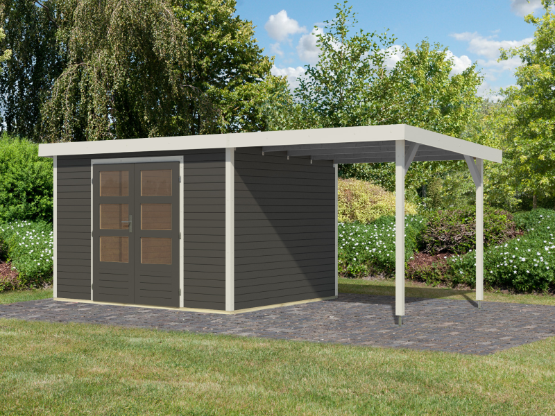 Karibu Hybrid Gartenhaus Jupiter 5 B terragrau/weiß, inkl. 2,35 m Anbaudach
