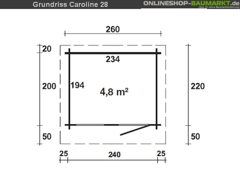 | Bohlenaußenmaß (B x T): | 260 x 220 cm |