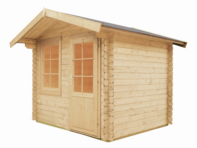 preiswertes Wolff Finnhaus Gartenhaus Caroline 28 mm ohne Fußboden in Blockbohlenbauweise mit stabiler Leimholztüre und Fenster.