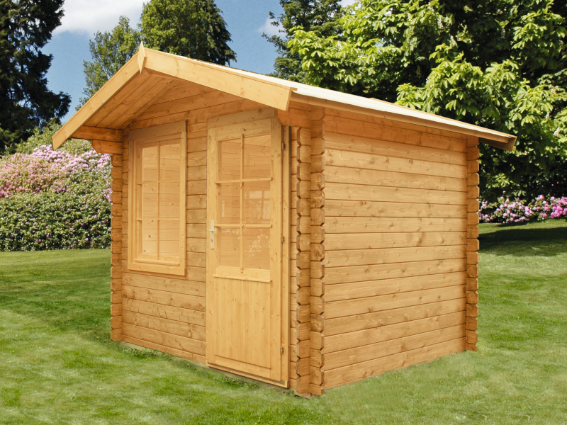 preiswertes Wolff Finnhaus Gartenhaus Caroline 28 mm inkl. Fußboden in Blockbohlenbauweise mit stabiler Leimholztüre und Fenster.